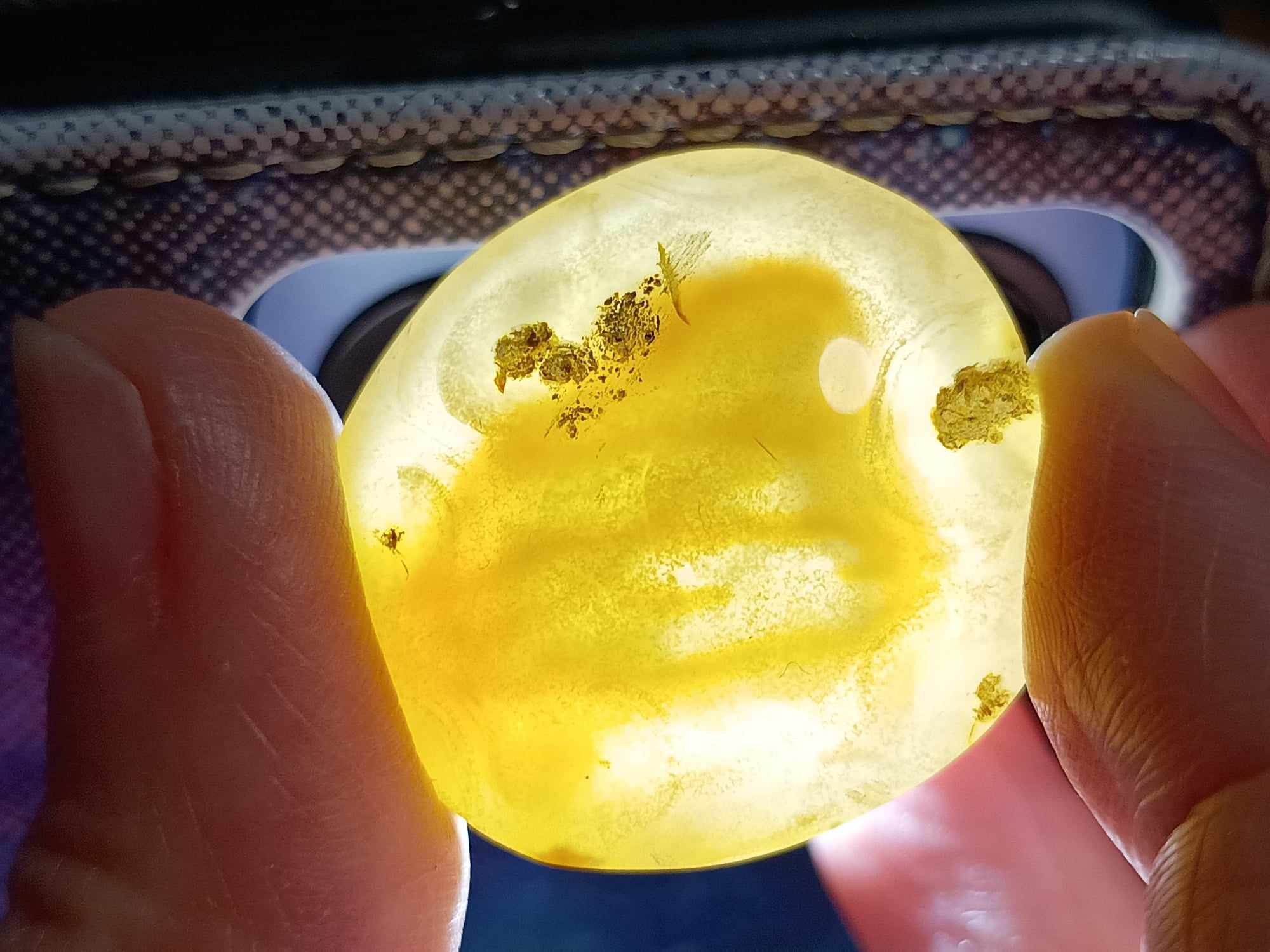 | Bildungsart: | – bildet sich in Vulkangegenden. Während des Prozesses der Auskühlung von Lava entstehen Hohlräume und Gasblasen. Im Laufe der Zeit reichern diese Hohlräume oder Gasblasen kieselsäurereiches Wasser an. Dieses kann Millionen von Jahre alt sein. Das Wasser härtet dann aus und der Achat erhält seine typische gebänderte Darstellung. – Die vielfältigen Farben entwickeln sich durch die Ergänzung von Chrom, Eisen, Mangan und weiteren Metallen – so bekommen die Achate ihre facettenreiche Färbung. – Der Enhydro oder auch Wasserachat entsteht, weil manche dieser oben genannten Hohlräume oder Gasblasen ihr Wasser nicht verlieren. Es wird weiter Kieselsäure eingelagert, bis sich der Hohlraum verschließt, wodurch sich die Flüssigkeit mit einschließt. Dieses eingeschlossene Wasser ist das was den Stein einzigartig/ selten macht und ihm seinen Namen gibt. Die Wasserblase ist beim Drehen des Steins sichtbar. (siehe 2te Foto) |